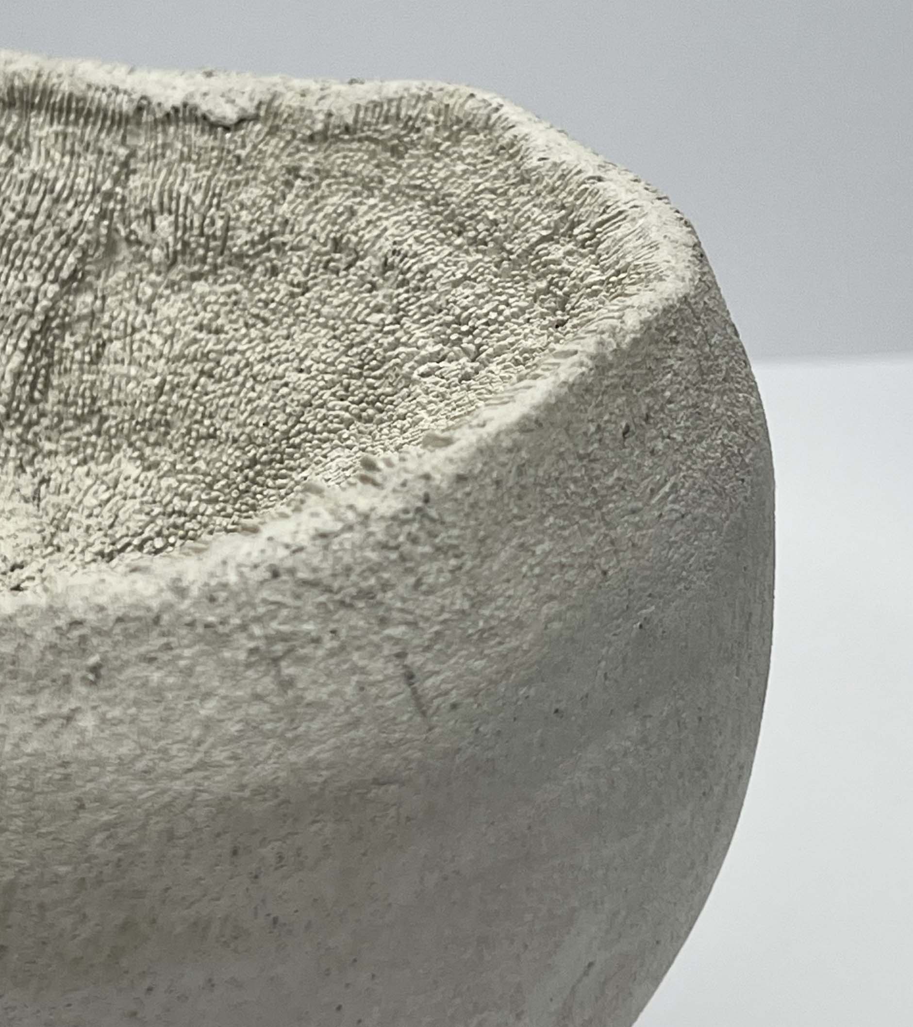 Vaso sfera Omuro con dettagli lisci e ruvidi, in versione pigmenti naturali, effetto vulcanizzato o effetto affumicato, ideale anche per decorazioni, portaoggetti e portavivande. Realizzato in cemento fatto a mano. Adatto per uso interno ed esterno. Ogni pezzo é unico.
