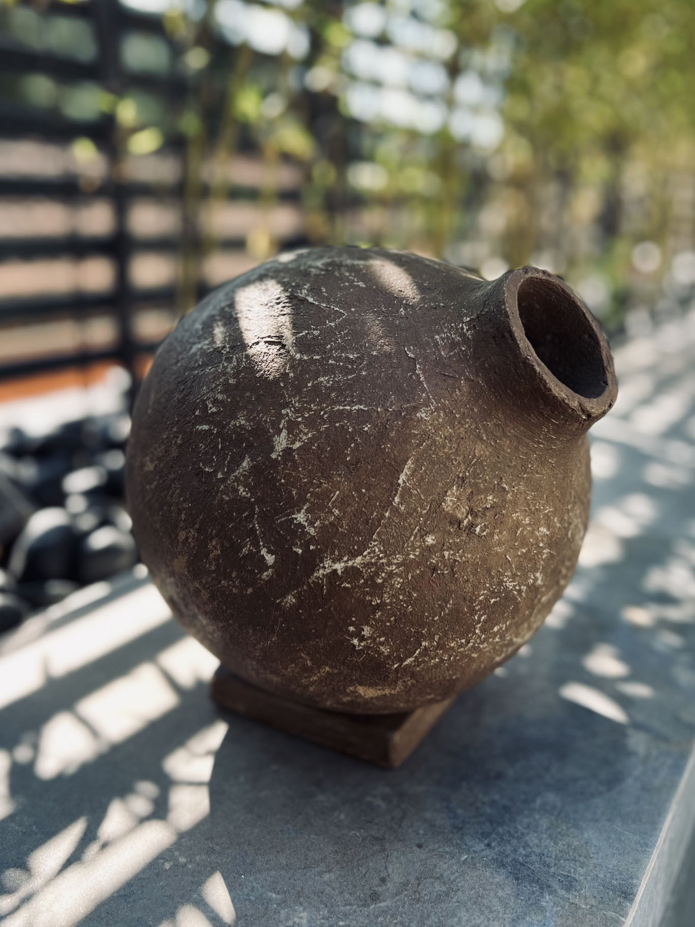 Vaso sfera Bolla con dettagli lisci, ruvidi e lavorati, in versione pigmenti naturali, effetto vulcanizzato o effetto affumicato, ideale anche per decorazioni o per l'inserimento di bonsai, piante e fiori rami secchi decorativi ecc. Realizzato in cemento fatto a mano. Adatto per uso interno ed esterno. Non raccomandato per uso alimentare. Ogni pezzo é unico.