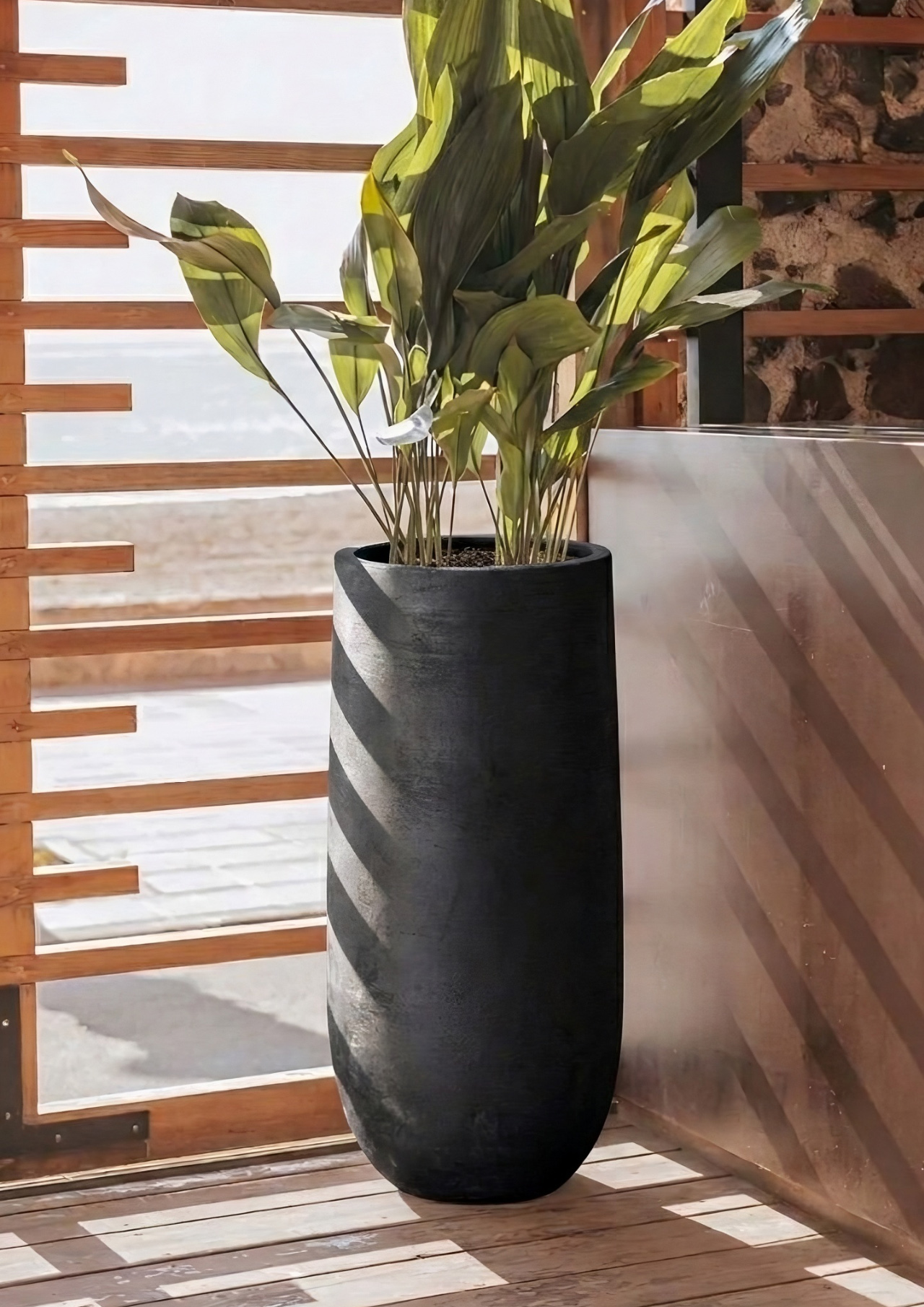 I vasi hanno dettagli lisci, ruvidi o grezzi, in versione pigmenti naturali, effetto vulcanizzato o effetto affumicato, ideale anche per decorazioni o da soli come sculture e oggetti decorativi oppure utilizzati per contenere acqua, terra e piante.